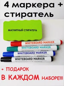 Набор маркеров для доски 4 шт + магнитная губка-стиратель + подарок в каждом наборе!