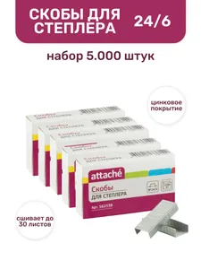 Скобы для степлера 24 6, набор 5000 штук, скобы 24/6 для степлера, канцелярские, оцинкованные, канцелярия для офиса / Attache