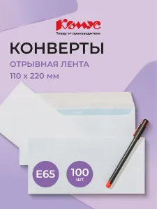 Конверты бумажные почтовые Комус, DL/E65, 110x220 мм, стрип, 100 штук