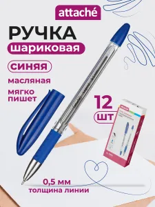 Ручки шариковые синие Attache, 0,5 мм, набор 12 штук