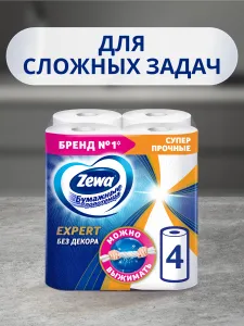 Бумажные полотенца Zewa Expert без принта, куб, 4 рулона