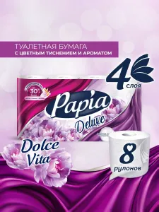 Туалетная бумага Papia Deluxe Dolce Vita белая 4 слоя 8 рулонов