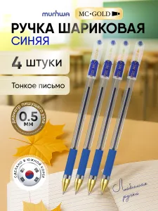 Набор ручек шариковых синих Munhwa MC Gold 4шт