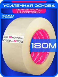 Лента клейкая 48мм х 180м х 43мкм (1 шт) прозрачная односторонняя, канцелярская Nova Roll 204